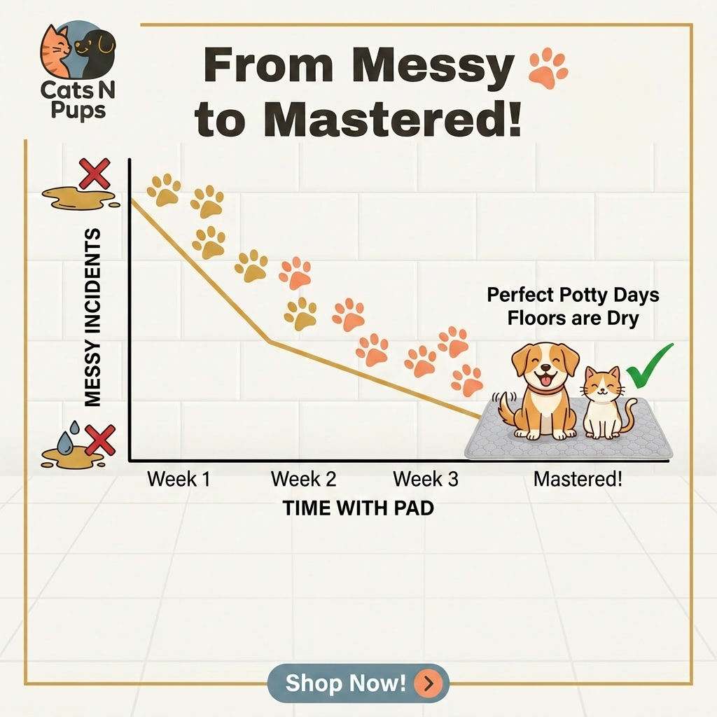 Gérez plus facilement les accidents, les jours d'entraînement et les dégâts après les repas. Ce tapis lavable pour animaux aide à protéger vos sols tout en vous offrant une routine plus propre et plus simple avec moins de déchets.